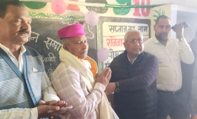 समाचार के साथ सेवानिवृत्ति शिक्षक शंभू प्रसाद को सम्मानित करते बीईओ एवं अन्य की फोटो संलग्न है।